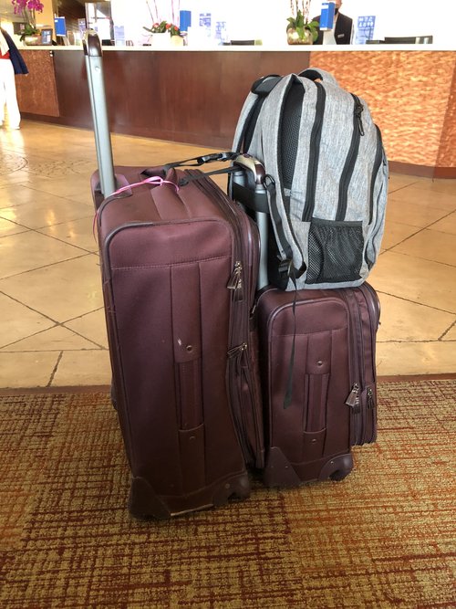 Up early to finish packing. Getting the food squared away. Making sure the two suit cases were both under 50 pounds. Getting all my electronics into my backpack. And down to the airport shuttle by 8:30 am. Arrive at the airport, check a bag, and go through security. I now have TSA pre-check so at least the line is shorter. On my way out to California they still searched my backpack as all the electronics do not x-ray well. This time they searched the carry on and ignored the backpack. The carry on had food and ice packs in it.